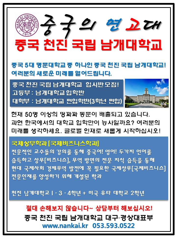 [남개대학교 대구경상대표부] 중국 대학 입학에 대한 오해와 진실!