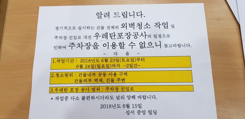 건물 관리팀에서 이런 연락이 왔습니다. 참 공교롭네요....